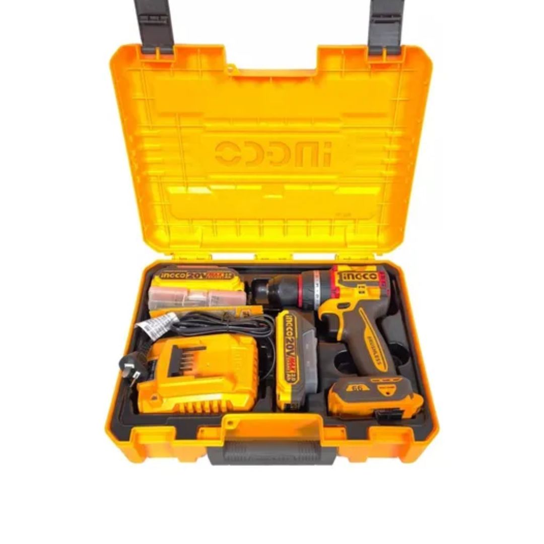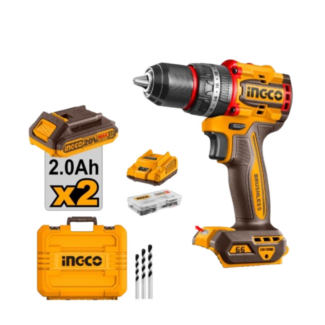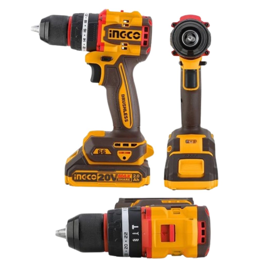 Es una herramienta sin carbón con batería de litio. El producto es un taladro inalámbrico compacto sin escobillas de 20V y 66N-m